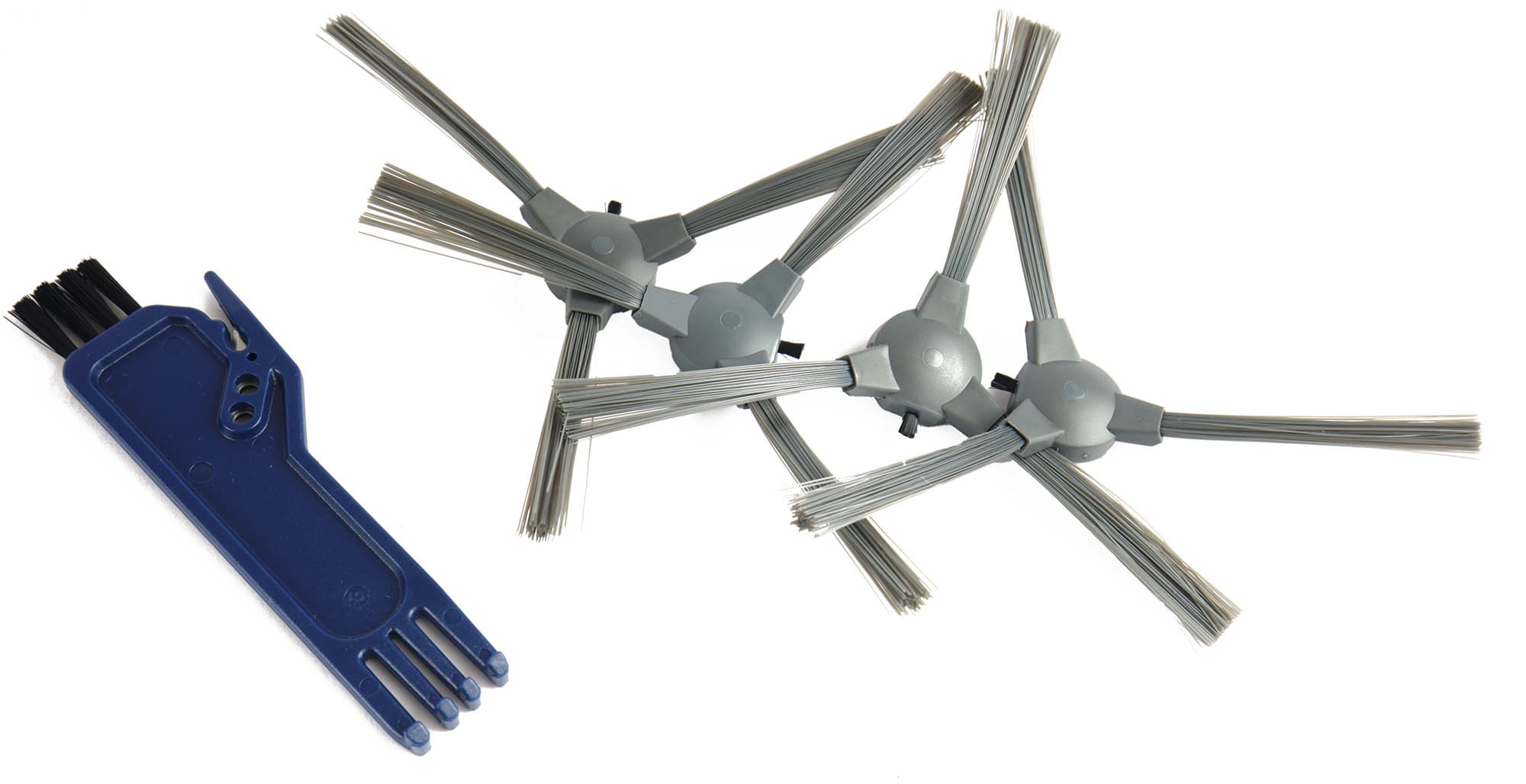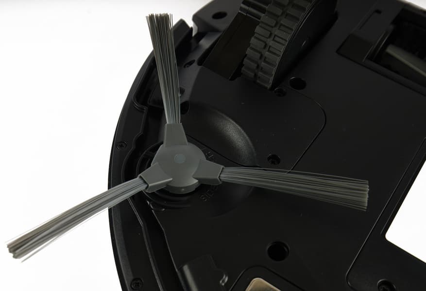 Боковые щетки робота не отличаются друг от друга — их можно устанавливать как на правое, так и на левое посадочное место. Это увеличивает ресурс расходников: при выходе из строя щетки можно заменить не весь комплект, а только один ротор. Крепятся они на защелках, ставятся без усилия, но держатся надежно.