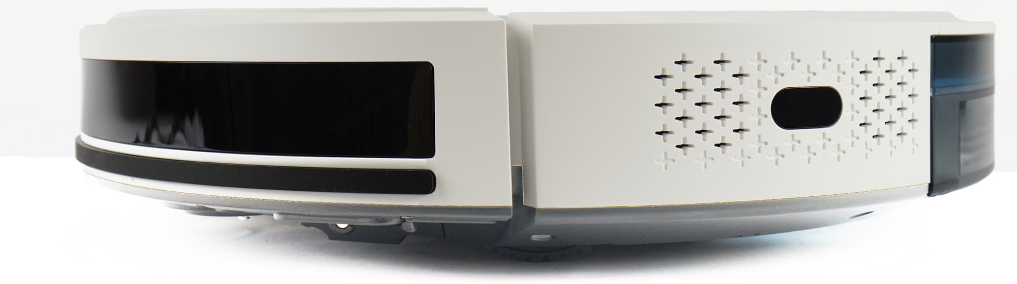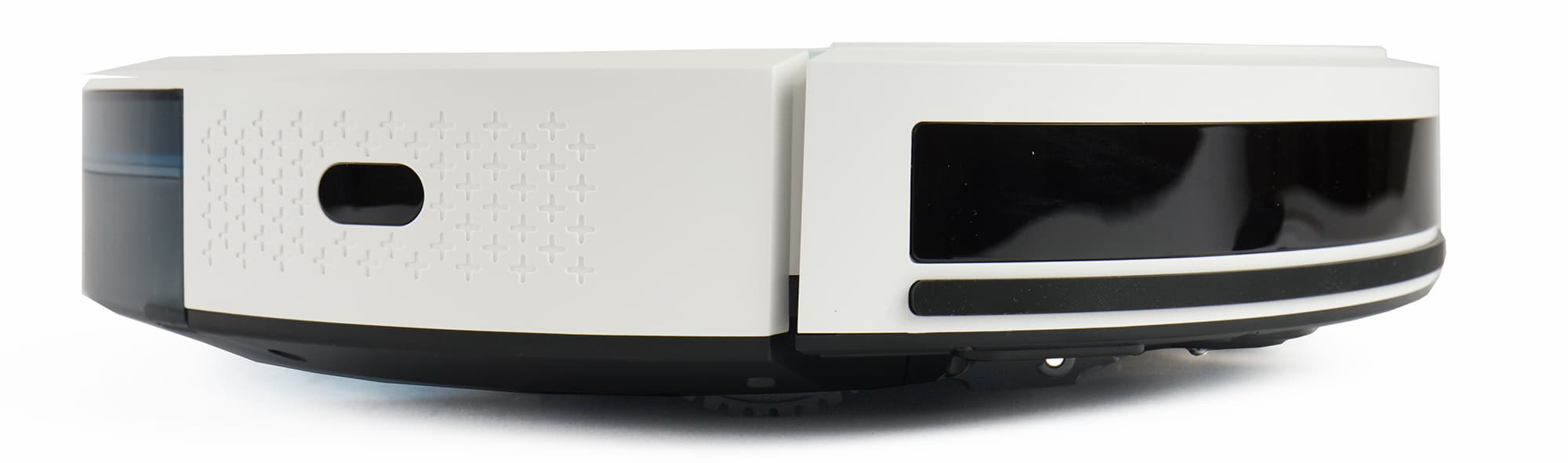 Переднюю половину окружности корпуса занимает традиционный подвижный бампер, внутри которого размещаются механические датчики столкновения. За ИК-прозрачным стеклом бампера есть также инфракрасные сенсоры, которые дополняют систему ориентации пылесоса и помогают ему обнаружить базу.