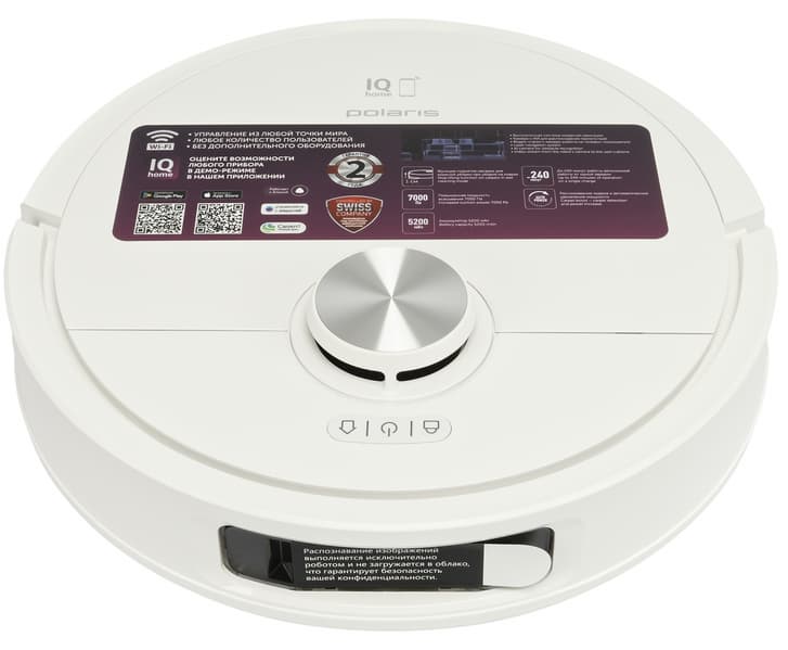 Робот-пылесос Polaris PVCRAC 7790 Wi-Fi IQ Home претендует на звание одной из топовых моделей в линейке Polaris, и в целом заслуживает такого звания. Он обладает множеством функций, обеспечивающих удобную и качественную уборку — тут и встроенная камера с распознаванием препятствий, и перерезание намотавшихся волос на щетке, и выдвижная «лапка», позволяющая протирать пол вдоль стен и под низкими препятствиями, и, конечно, станция самоочистки с автоматической мойкой горячей водой и просушкой салфеток-мопов теплым воздухом.
