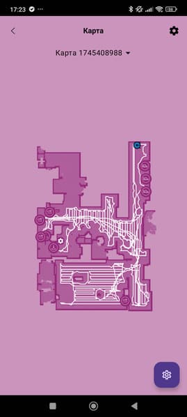 Как мы видим, робот проходит помещение по периметру, а затем убирает центральную часть змейкой. Карта становится доступной для редактирования по завершении первой автоматической уборки. Готовую карту (при желании) можно разбить на комнаты, расставить запретные зоны и т. д.