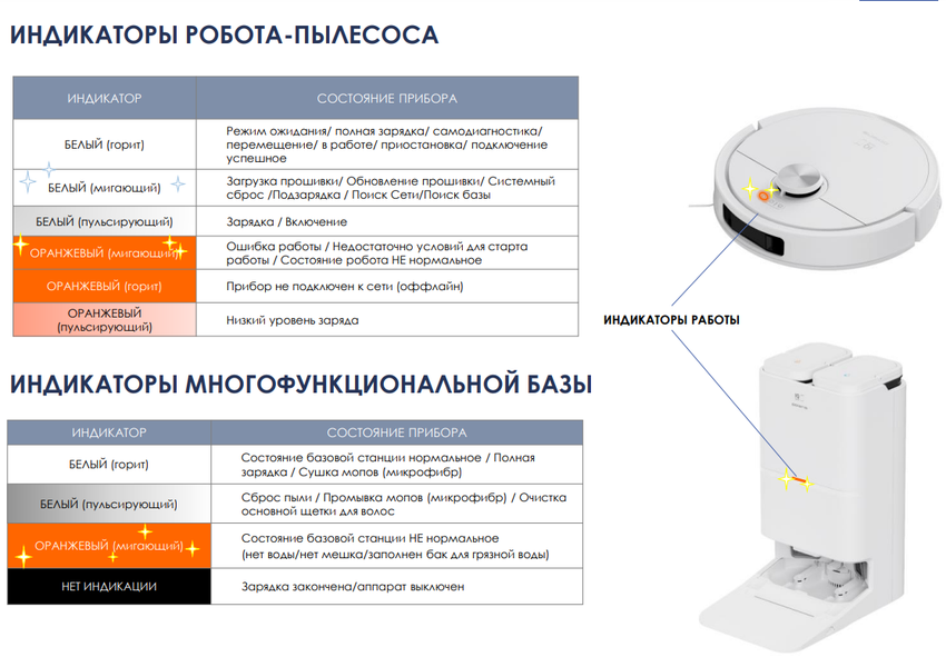 Свои индикаторы есть и у базы. Их расшифровка также приведена в руководстве пользователя.