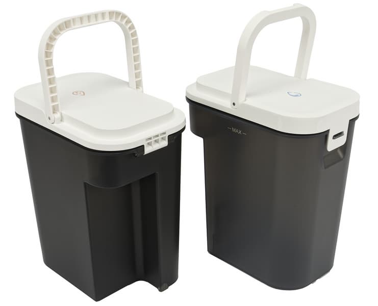 Контейнеры сделаны из достаточно сильно затемненного пластика и имеют откидную ручку для удобства переноски.