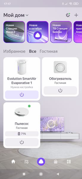 Голосовое управление (с помощью Алисы) также работает, но тут, как водится, имеется множество недоработок. Проще воспользоваться фирменным мобильным приложением — оно функционирует исправно, без нареканий.