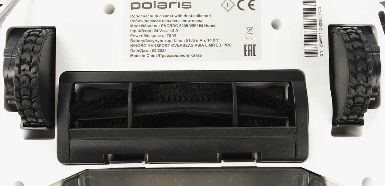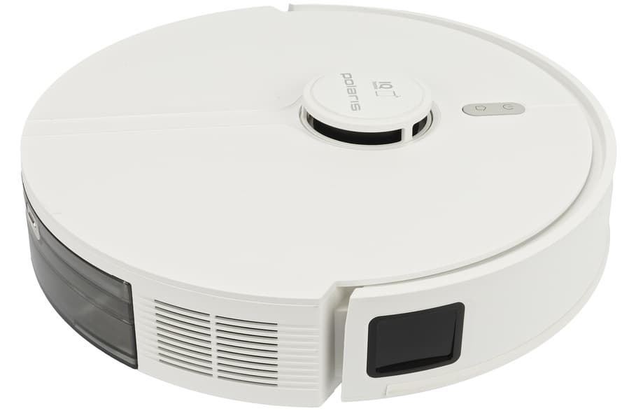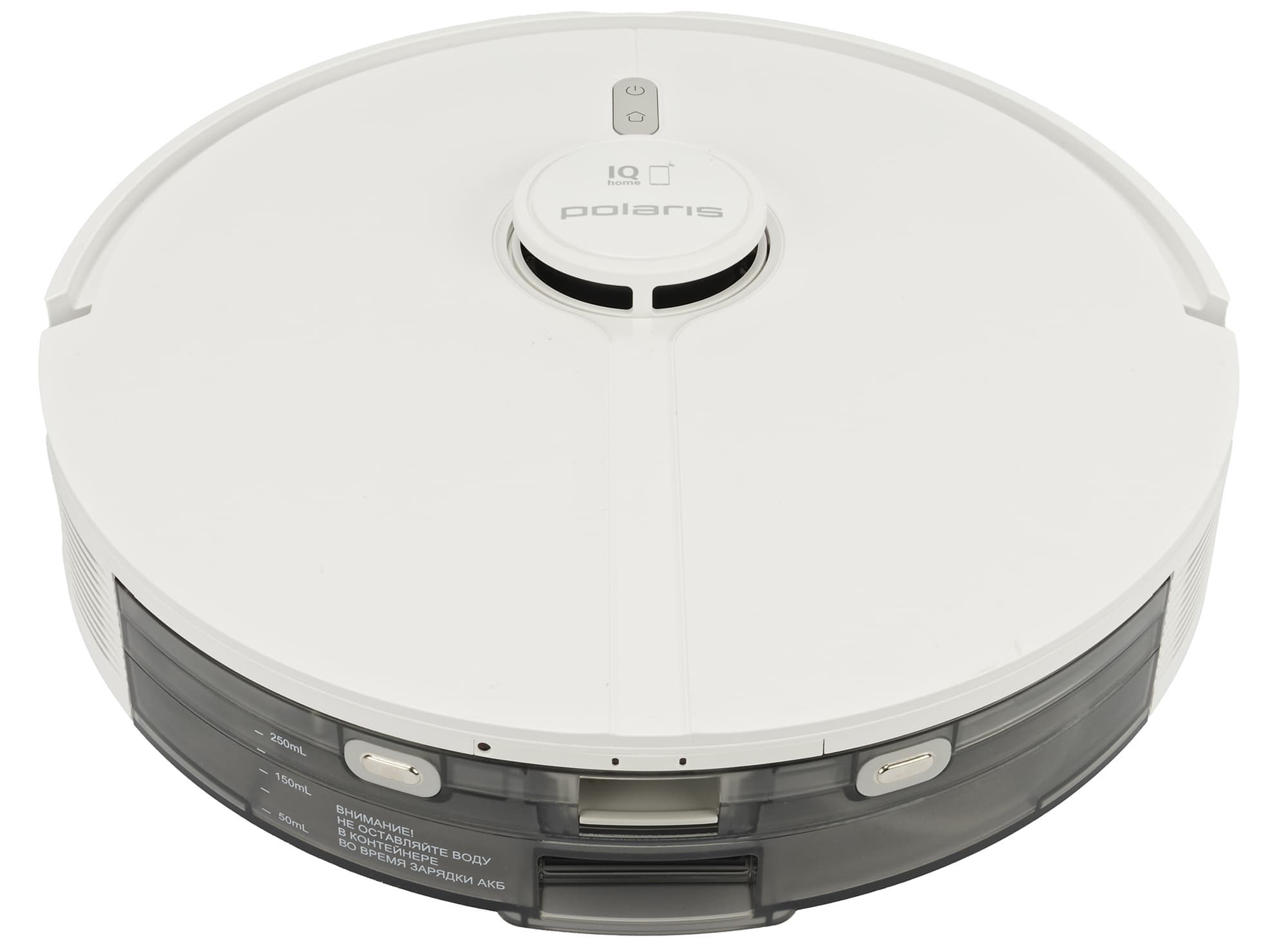 Дизайн без изысков: башенка лидара украшена логотипом Polaris и изображением смартфона с подписью IQ Home (что напоминает нам о возможности управления пылесосом с помощью приложения для смартфонов).