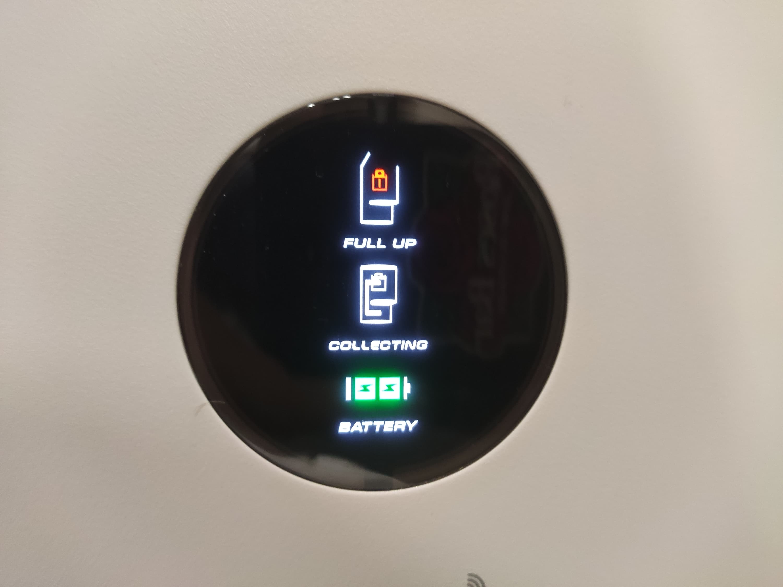 За 15-20 секунд содержимое контейнера будет перемещено в одноразовый мешок, после чего начинается зарядка.