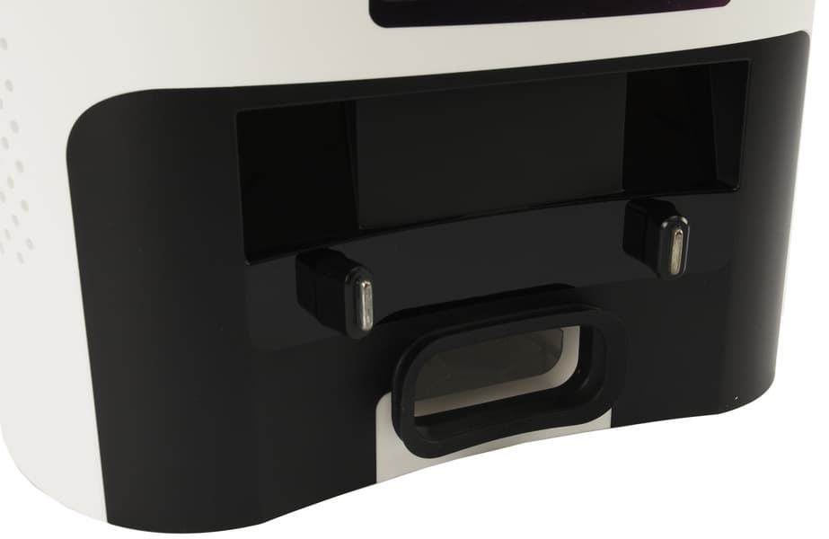 Над глянцевой верхней панелью возвышается башенка лидара: в ней вращается основной навигационный орган пылесоса, состоящий из оптического излучателя и приемника. С помощью LDS-сенсора пылесос с высокой точностью определяет расстояние до препятствий и моментально строит карту помещения, планируя уборку.