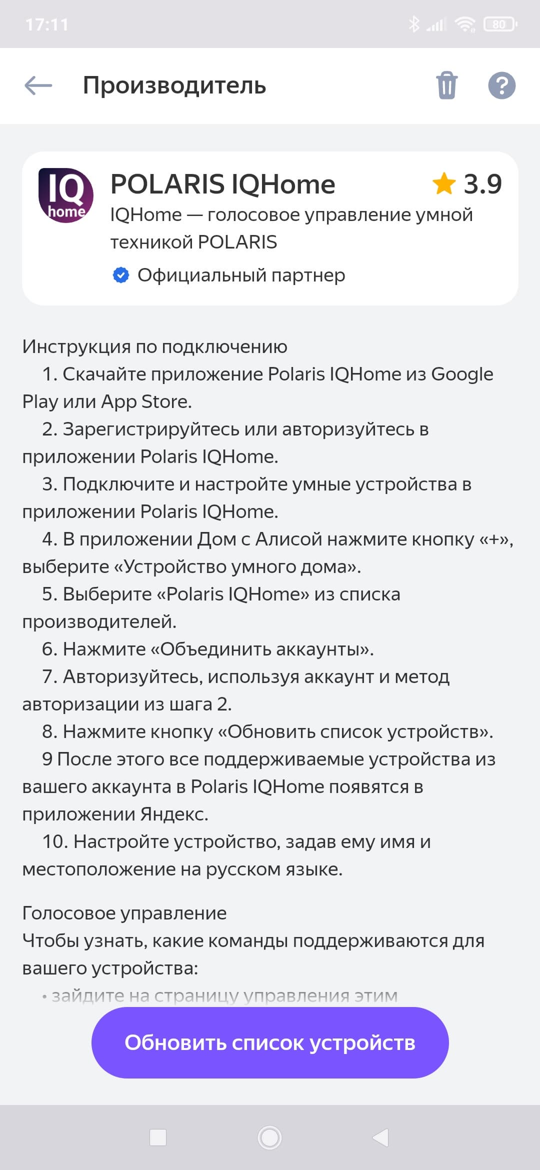 Если открыть список голосовых команд, то мы можем оценить все возможности голосового управления. И снова видим загадки типа «Поставь третий источник сигнала на пылесосе».