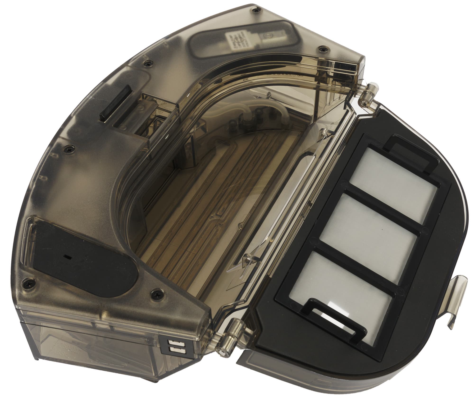 Единственный модуль-пылесборник, входящий в комплект, предназначен для комбинированной (сухой и влажной) уборки. Его отсек находится в задней части корпуса.