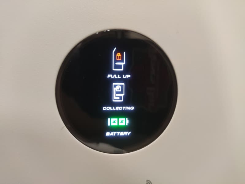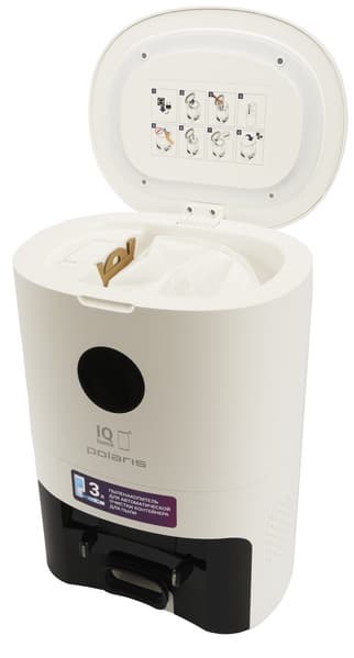 Под откидной крышкой прячется отсек для установки трехлитрового мешка для сбора пыли. Поток воздуха с пылью и мусором покидает контейнер и направляется в одноразовый пакет, установленный в отсеке станции. Посадочное место под него оборудовано специальным датчиком, и без мешка функция самоочистки не включится.