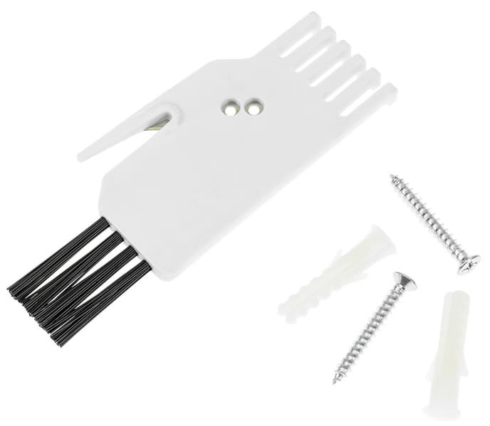 В комплект входят также приспособление для чистки ротора и HEPA-фильтра, снабженное щеточкой и лезвием для срезания намотавшихся на электрощетку волос и ниток, и комплект саморезов и дюбелей для монтажа подвеса.