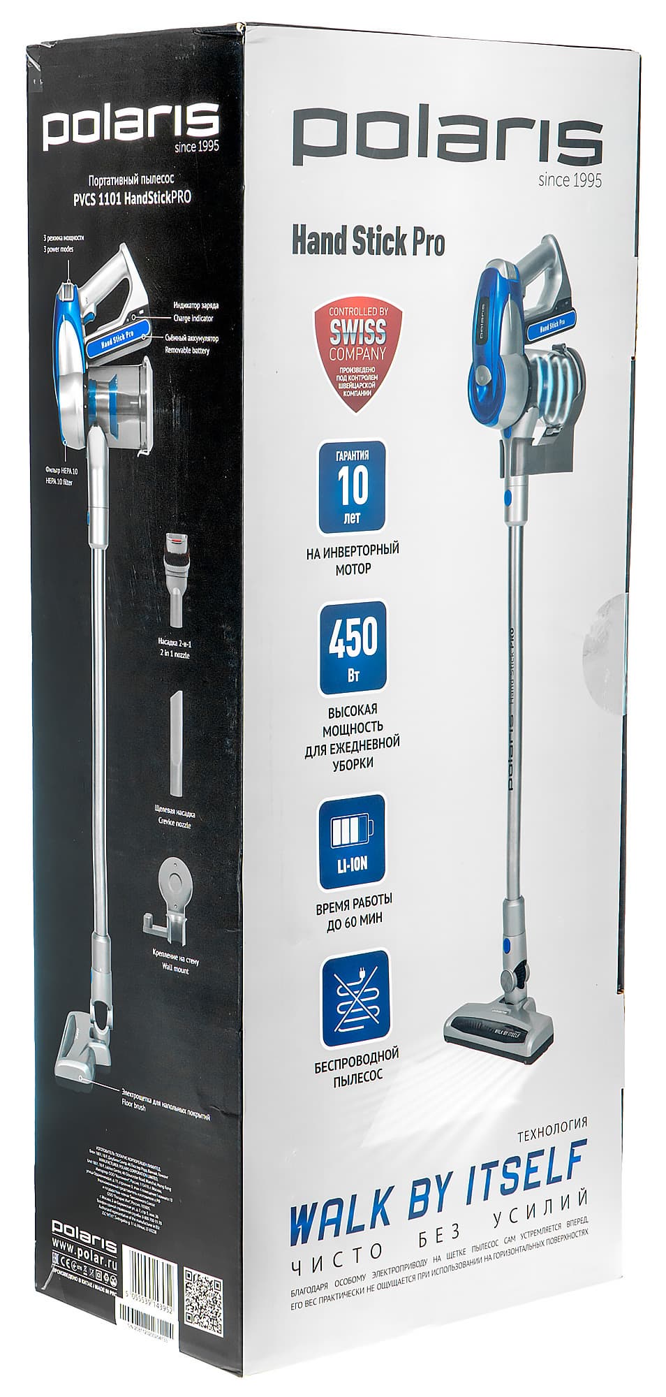 Вертикальный пылесос Polaris PVCS 1101 HandStickPro предназначен для ежедневной уборки, и все в нем направлено на то, чтобы сделать ее эффективной. В первую очередь, это заявленная производителем автономная работа до 60 минут.