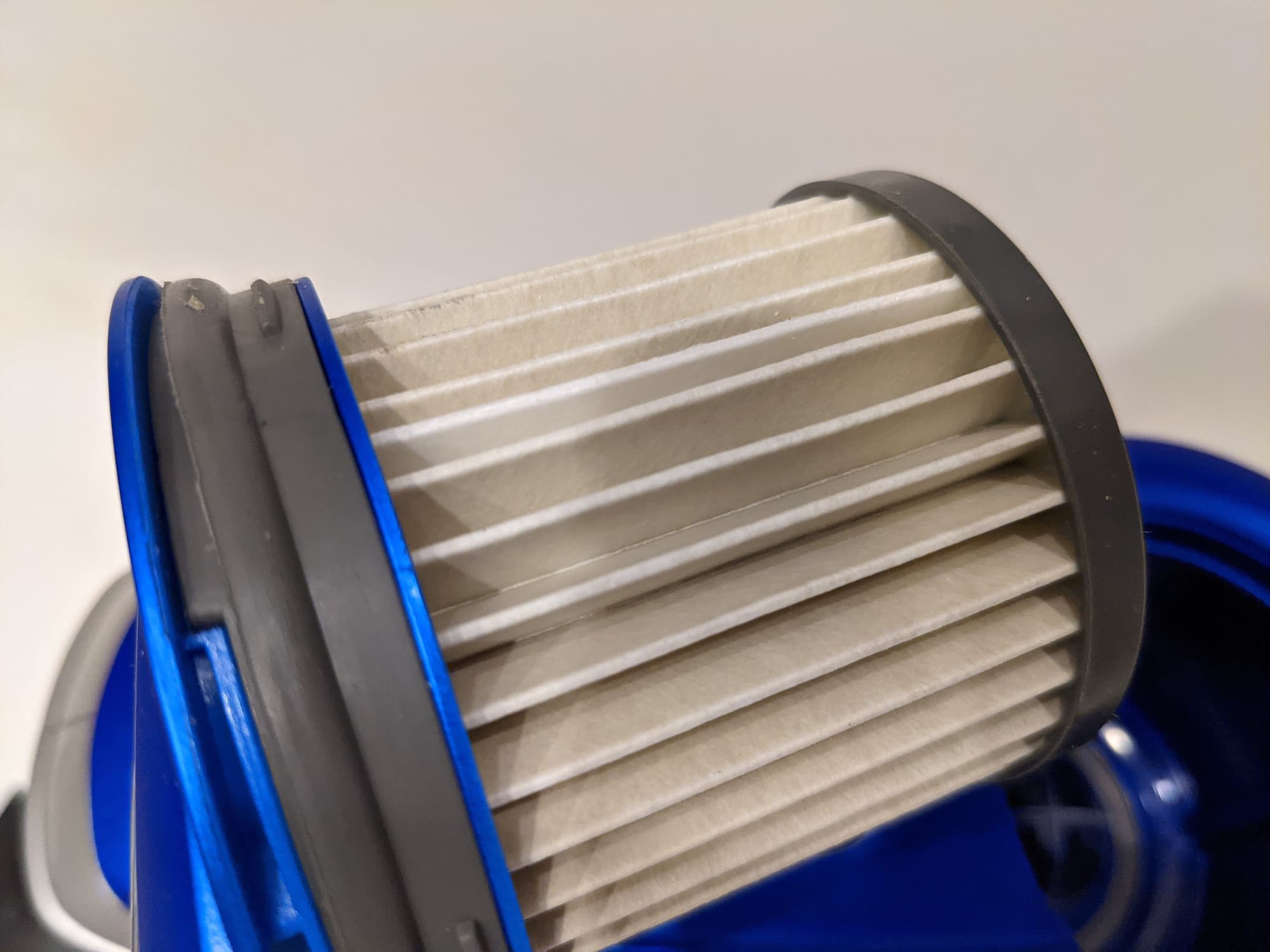 Решетка предварительного фильтра эффективно задерживает пыль и мелкий мусор: отсек с HEPA-фильтром остается чистым даже после нескольких активных уборок.