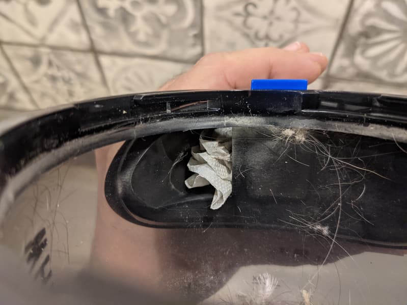 Извлечь его без помощи инструментов непросто: чтобы вытолкнуть мусорную пробку обратно в воздушный тракт, следует отсоединить удлинительную трубку и контейнер мусоросборника и воспользоваться тонким упругим предметом: изогнутой шпилькой или куском проволоки.