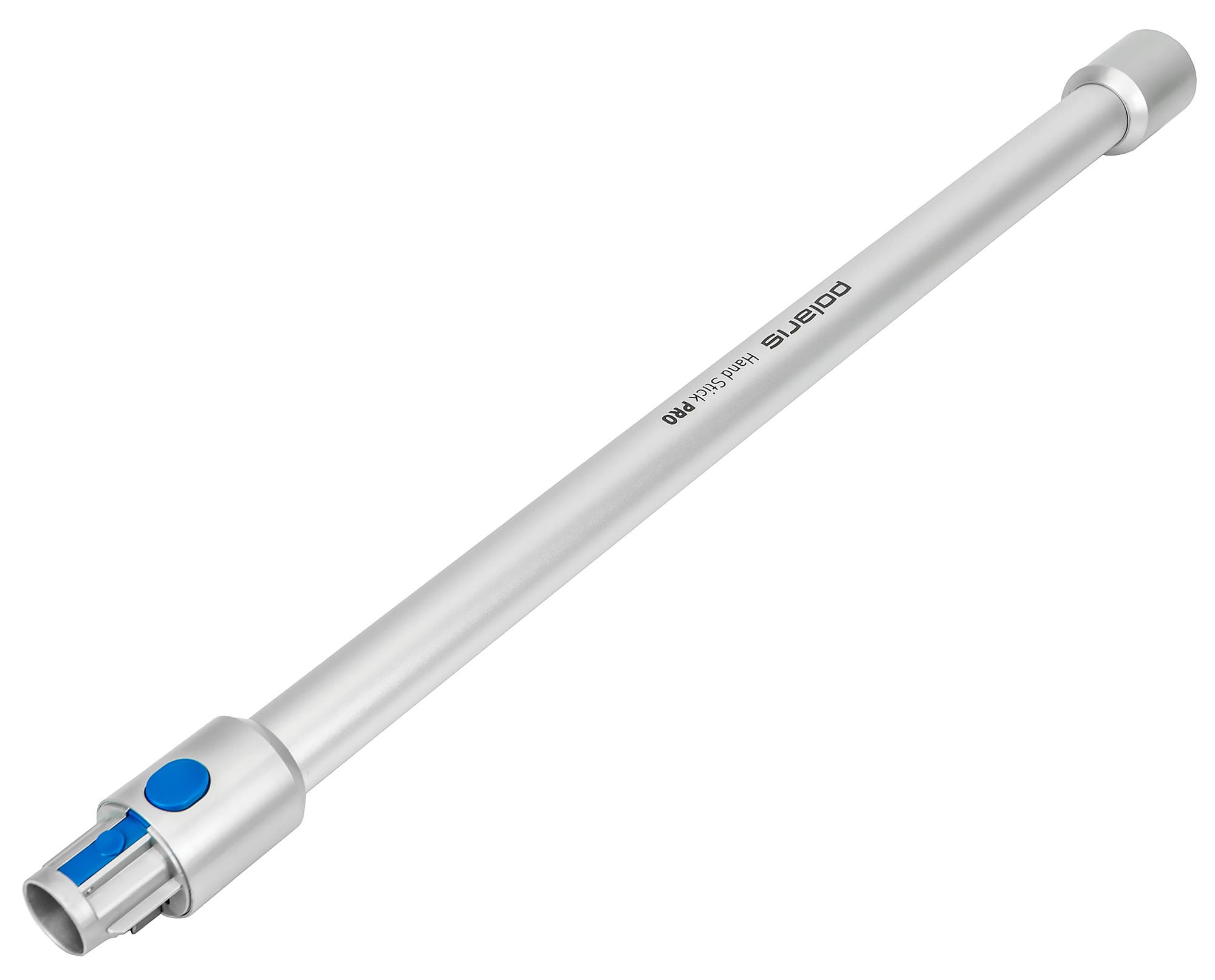Удлинительная трубка из серебристого пластика снабжена защелкой для фиксации насадки. Внутри нее, вдоль воздушного тракта, проходит провод, питающий электрощетку. Для подключения на торцах трубки есть вилка и розетка.