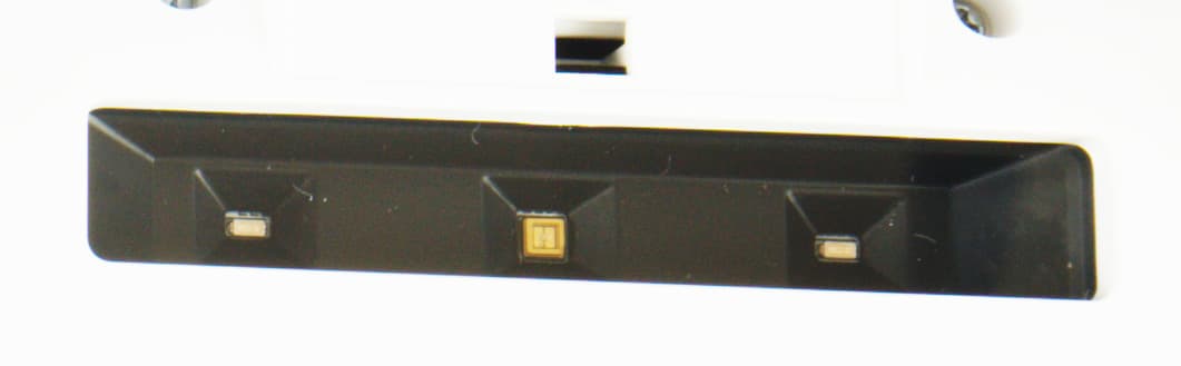 Ультрафиолетовый излучатель, являющийся «изюминкой» насадки для уборки, состоит из трех УФ-диодов двух типов. Центральный светит заметно слабее, боковые — ярче.