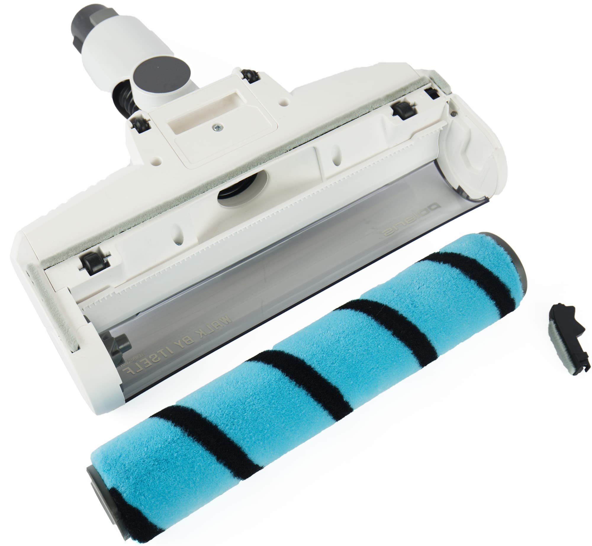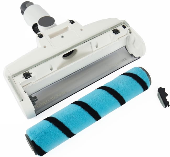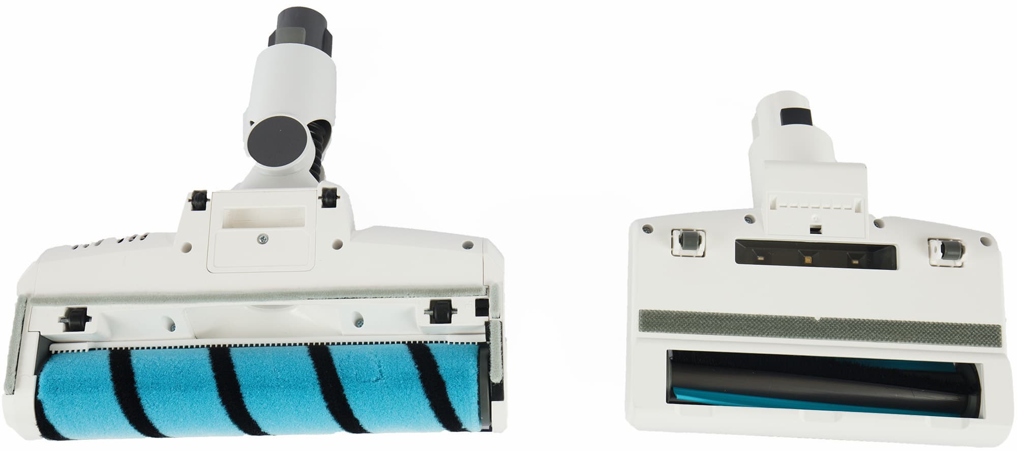 У каждой моторной щетки есть прозрачный кожух, позволяющий контролировать вращение роторов. Рабочим элементом насадки для пола служит цилиндрическая щетка с короткой и мягкой щетиной. Ротор мебельной электрощетки снабжен двумя силиконовыми ламелями и двумя рядами щеток из щетины средней жесткости.