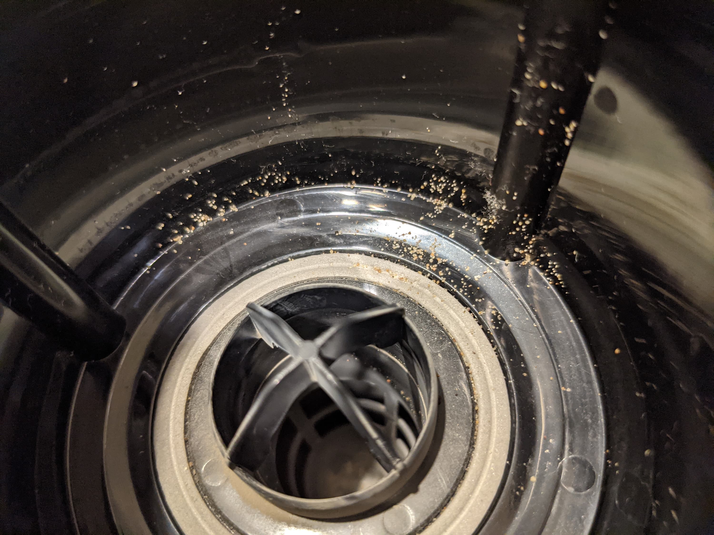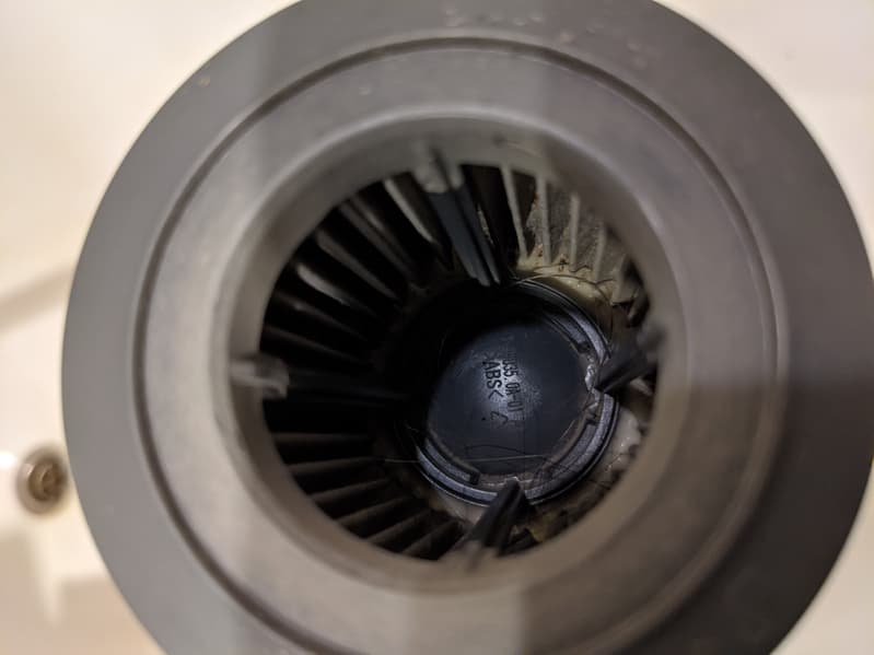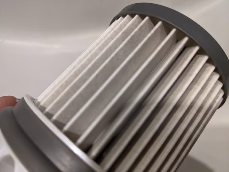 Крупный и тяжелый мусор оседает в нижней части емкости, среднюю фракцию отделяет цилиндрический фильтр из металлической сетки, а мелкая пыль оседает на гармошке HEPA-фильтра, который расположен в отдельном отсеке под крышкой на верхней панели прибора.