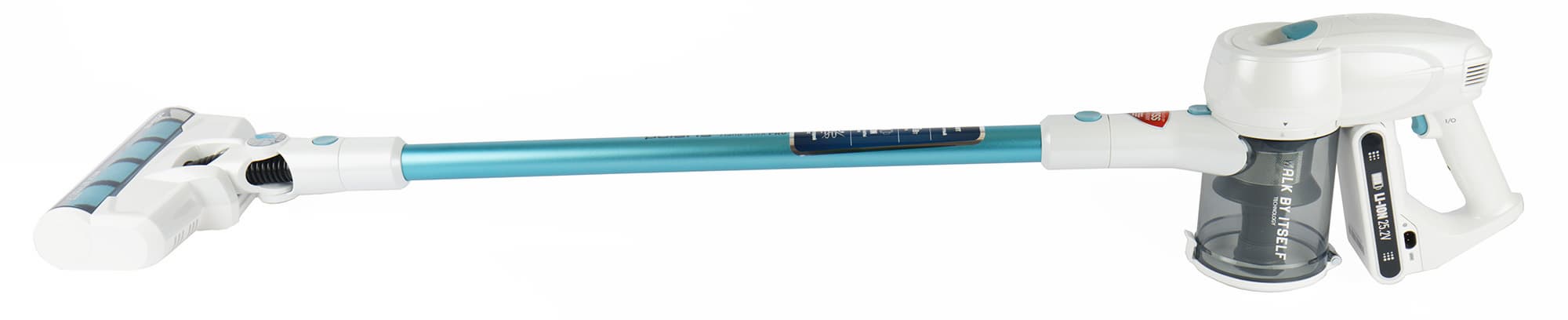 При достижении критического уровня заряда работающий на максимальной мощности пылесос автоматически переключается на минимальные обороты. Такое решение позволяет не бросать уборку на полпути, а закончить начатое, пусть и с некоторым снижением производительности.
