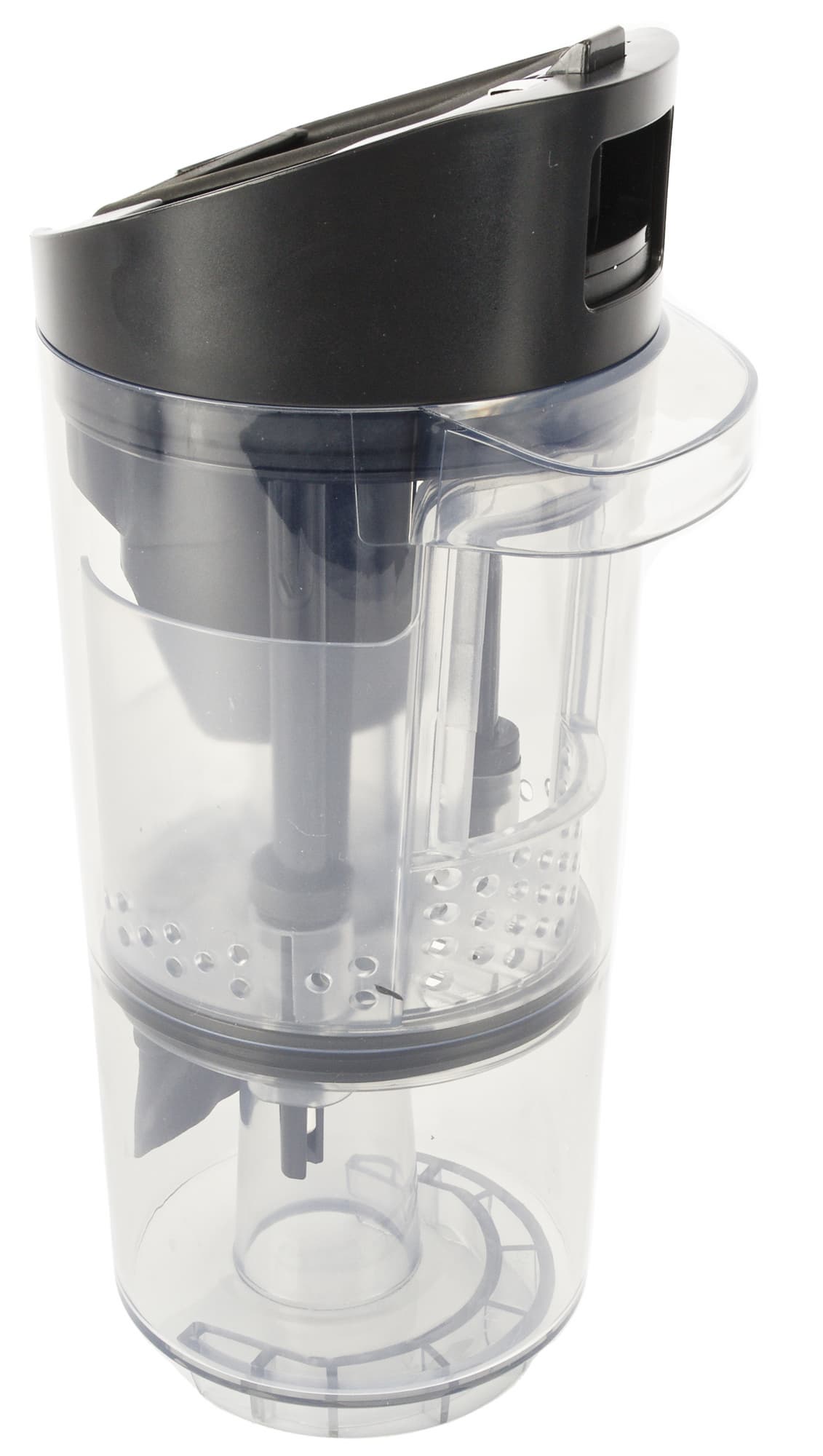 Для полной очистки и обслуживания мусоросборник вместе с системой фильтров следует отделить от корпуса, нажав на клавишу в верхней части.