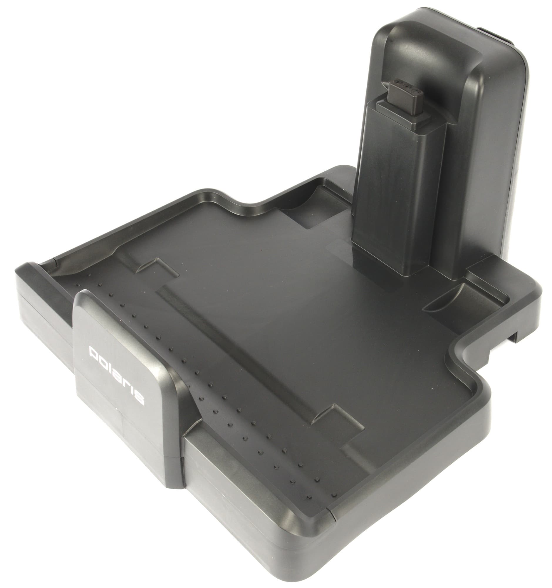 Для обслуживания и зарядки предназначена базовая станция из черного пластика. В передней части ее плоского поддона есть углубление, где при промывке ротора скапливается избыток воды.