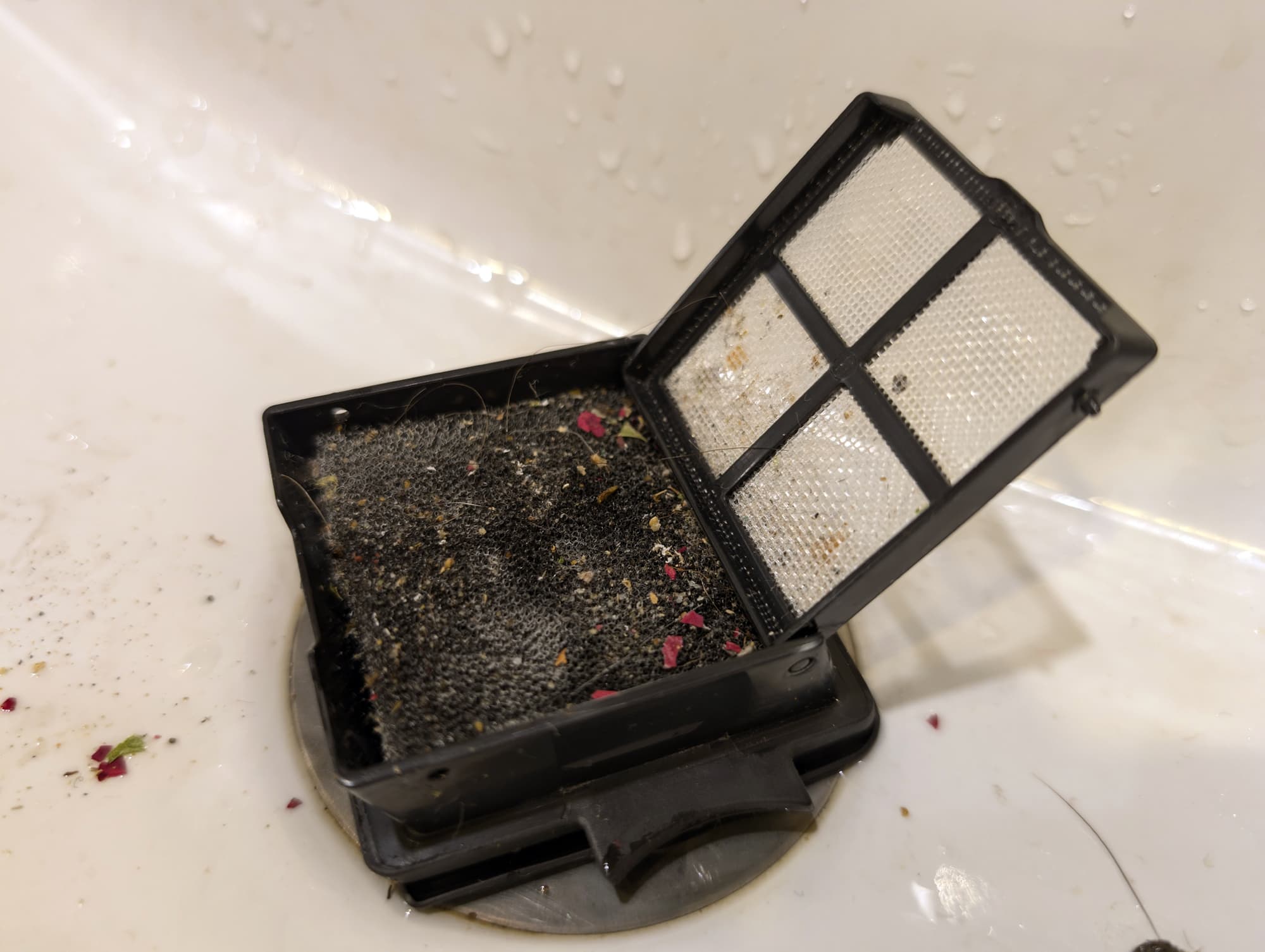Некоторая часть мусора может застрять между верхним срезом шахты мусороприемника и пластиковой пробкой — по окончании уборки стоит проверить этот узел.
