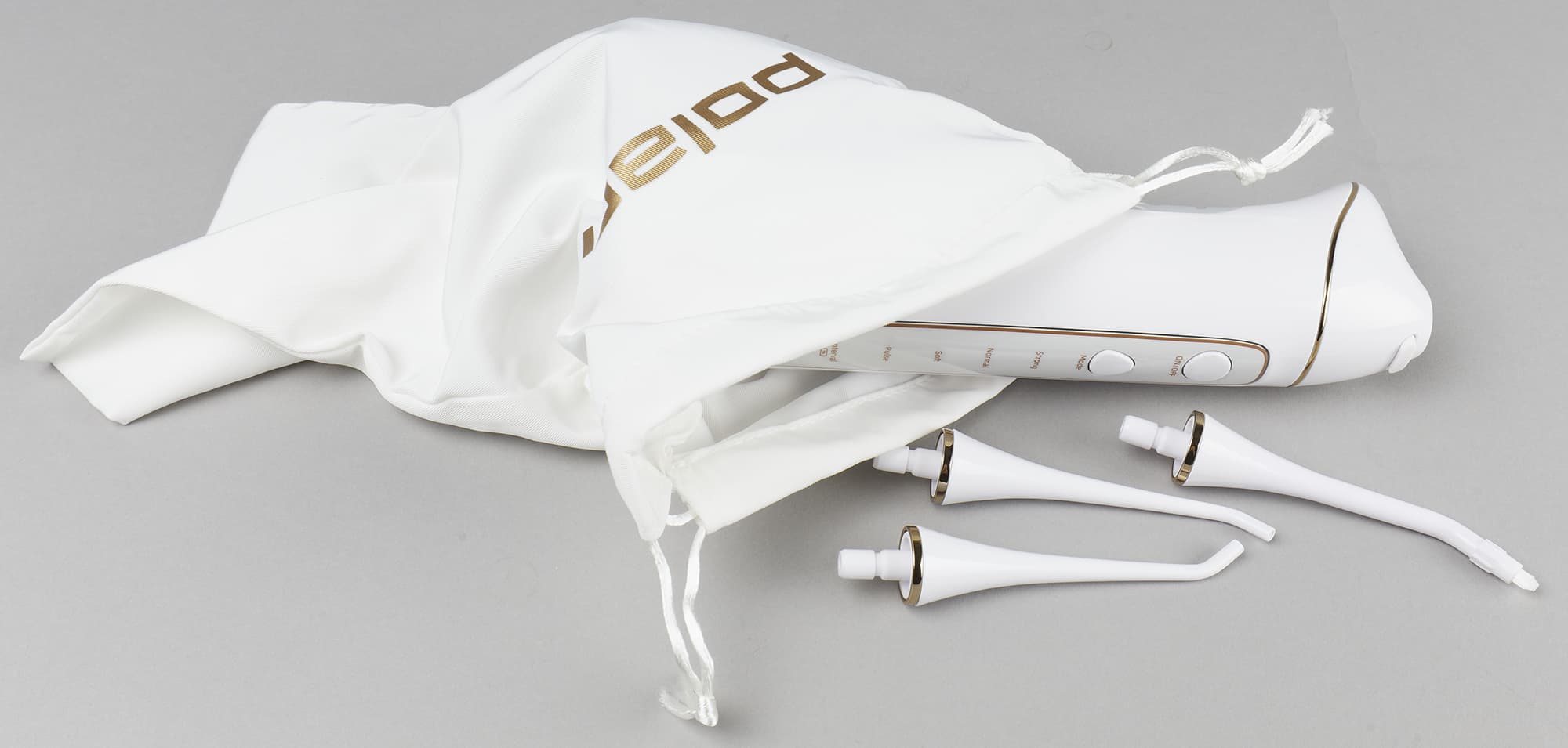 Ирригатор Polaris PWF 0201 понравился нам изящным дизайном и красивым исполнением, продуманной конструкцией и хорошей эффективностью орошения. Большой диапазон режимов работы подойдет как для людей с чувствительными зубами, только знакомящимися с таким типом чистки, так и для опытных пользователей подобных приборов. Для тех, кому белый цвет устройства не по вкусу, производитель предлагает эту модель в черном и розовом исполнении.