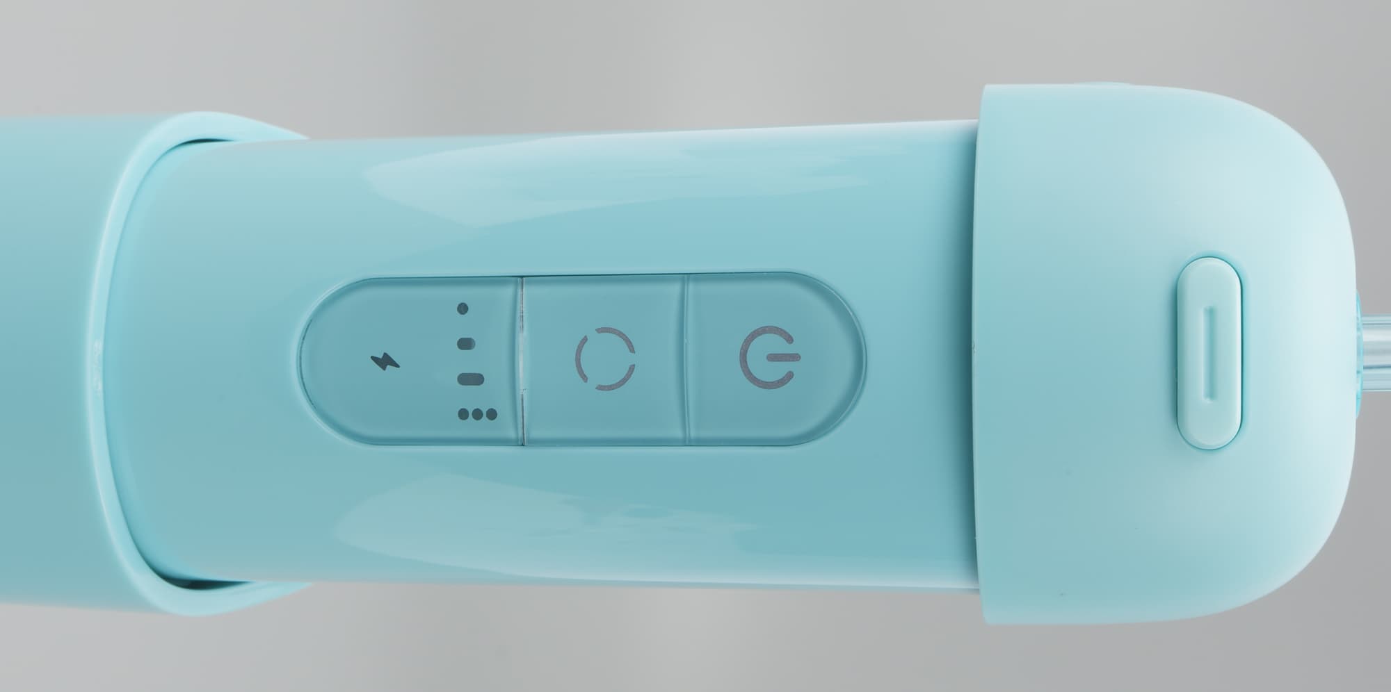 Небольшой размер и форма прибора помогают легко ухватить его одной рукой, большой палец автоматически ложится на секции панели управления. Ирригатор легкий и по ощущениям очень приятный.