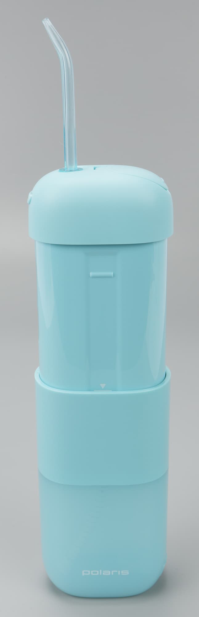 От портативного ирригатора в первую очередь ждешь компактности, в этом случае очень трудно придраться к чему-либо: сама коробка, система укладки в ней и, наконец, корпус прибора очень аккуратны. Дизайн модели Polaris PWF 1002 T элегантно сдержан, перед нами небольшой выдвижной бирюзовый пенал, в собранном виде легко умещающийся в мужской ладони. Нет никаких проблем убрать его в дорожную или дамскую сумку, поставить на раковину, тумбочку. Визуально его «размер» увеличивает прозрачная насадка, раздвигается прибор одним скользящим движением, а в раскрытом положении легко фиксируется.
