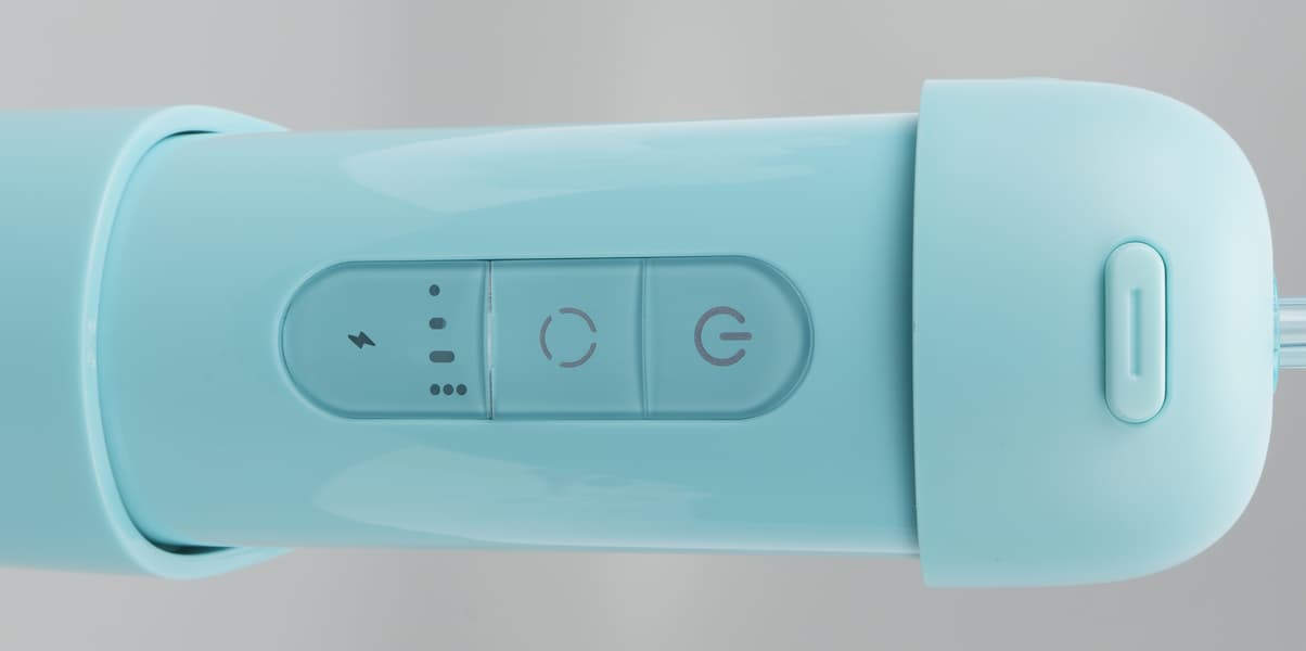 Режимов всего четыре, производитель называет их: мягкий, средний, сильный, массажный. Переключаются они одним плавным нажатием кнопки переключения, индикатор показывает актуальный. Внутри ирригатора умный чип, который запоминает последний использованный режим, при следующем включении автоматически запустится тот, которым вы пользовались последним. Каким именно пользоваться — лучше обсудить со своим стоматологом, они рекомендуют в любом случае начинать с наиболее щадящего.