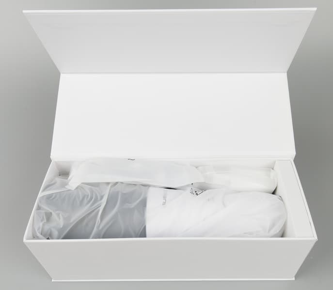 Внутри упаковки корпус ирригатора находится в неподвижности благодаря двум вставкам-фиксаторам сверху и снизу. Некоторые аксессуары находились в резервуаре для воды, другие размещались в пустых местах упаковки. Корпус и все комплектующие были бережно уложены в защитные пакеты.