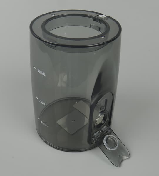 Отсоединяется корпус от резервуара для воды интуитивно понятным движением — поворотом против часовой стрелки. Резервуар оснащен отметками уровня воды в 100, 200 и 300 мл. Заливное отверстие надежно закрывается откидывающейся пластиковой пробкой. Форма детали эргономична, пробка легко отстегивается. По периметру заливного отверстия пробка оснащена прокладкой из прорезиненного материала. Со стороны дна наклеен серийный номер изделия и шильдик с краткой технической информацией.