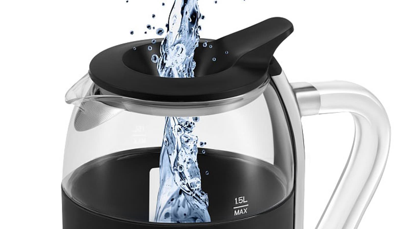 Центральная часть крышки чайника сделана по запатентованной технологии производителя — благодаря ей можно наливать воду в чайник, не снимая крышку с самого устройства. Для этого достаточно подставить чайник под струю воды и пластиковый круг посередине опустится вниз и позволит воде плавно, но быстро попасть в колбу.