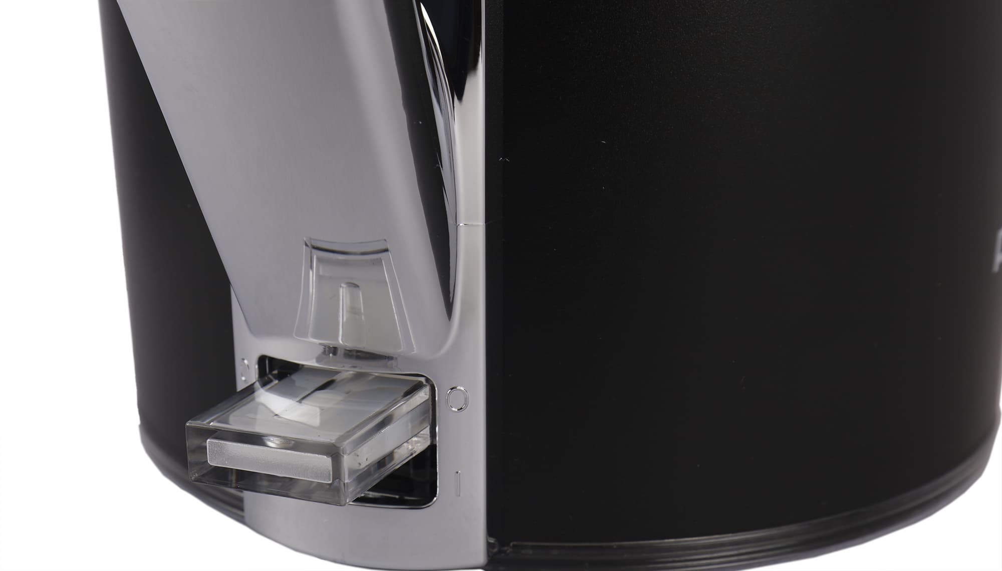 Крышка чайника сделана из черного пластика снаружи и прозрачного пластика по центру. С внутренней стороны по периметру расположено уплотняющее силиконовое кольцо, благодаря которому крышка надежно садится на колбу. Под силиконовой прокладкой располагается металлический фильтр из нержавеющей стали — точно по размеру носика чайника.