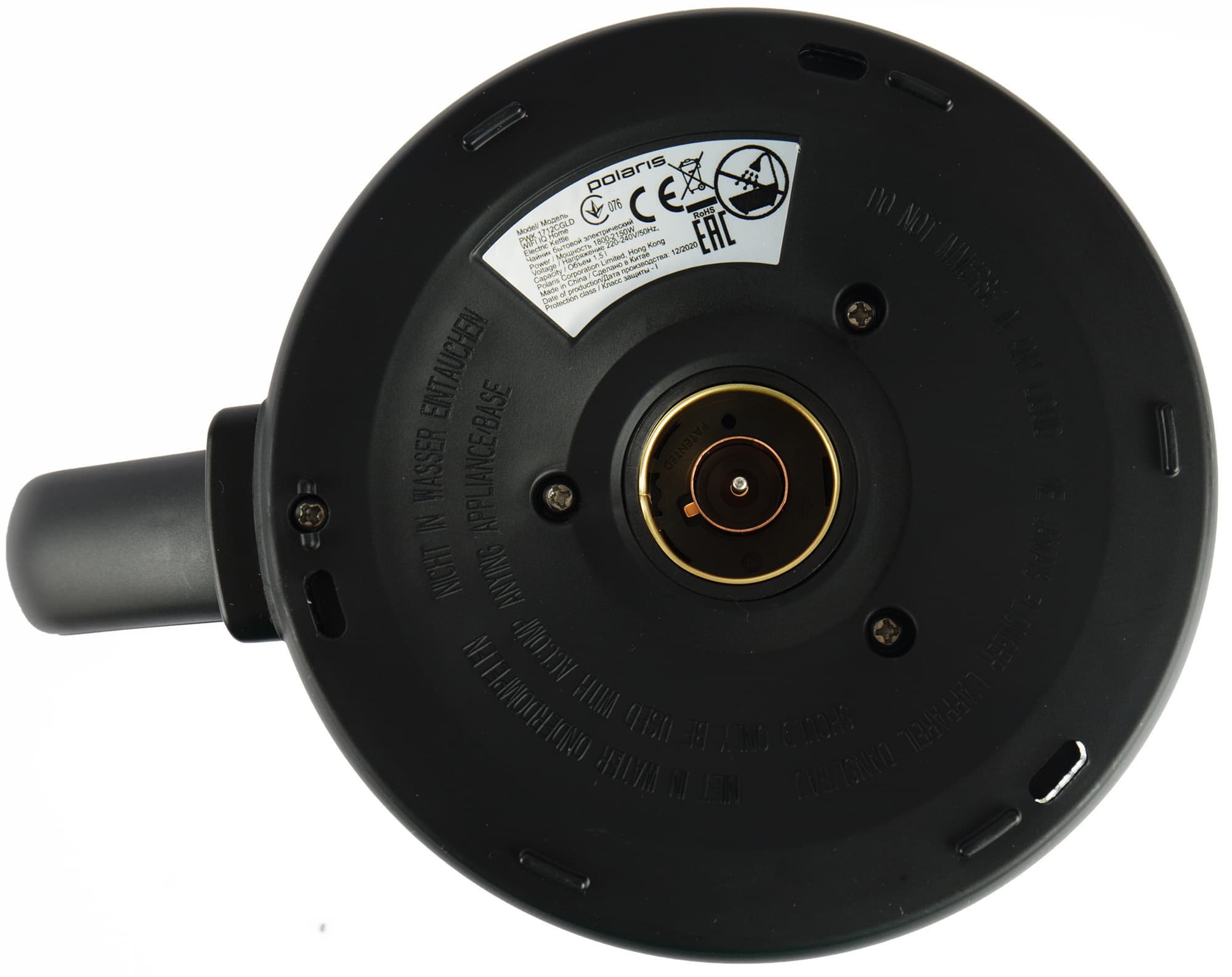 На дне — контактная группа из одного штыря и одного металлического кольца. Как и во многих других чайниках, тут применяется контроллер британской компании Strix, благодаря которому, обещает Polaris, чайник способен выдержать 15 тысяч циклов кипячения, что составляет около 10 лет активного использования.