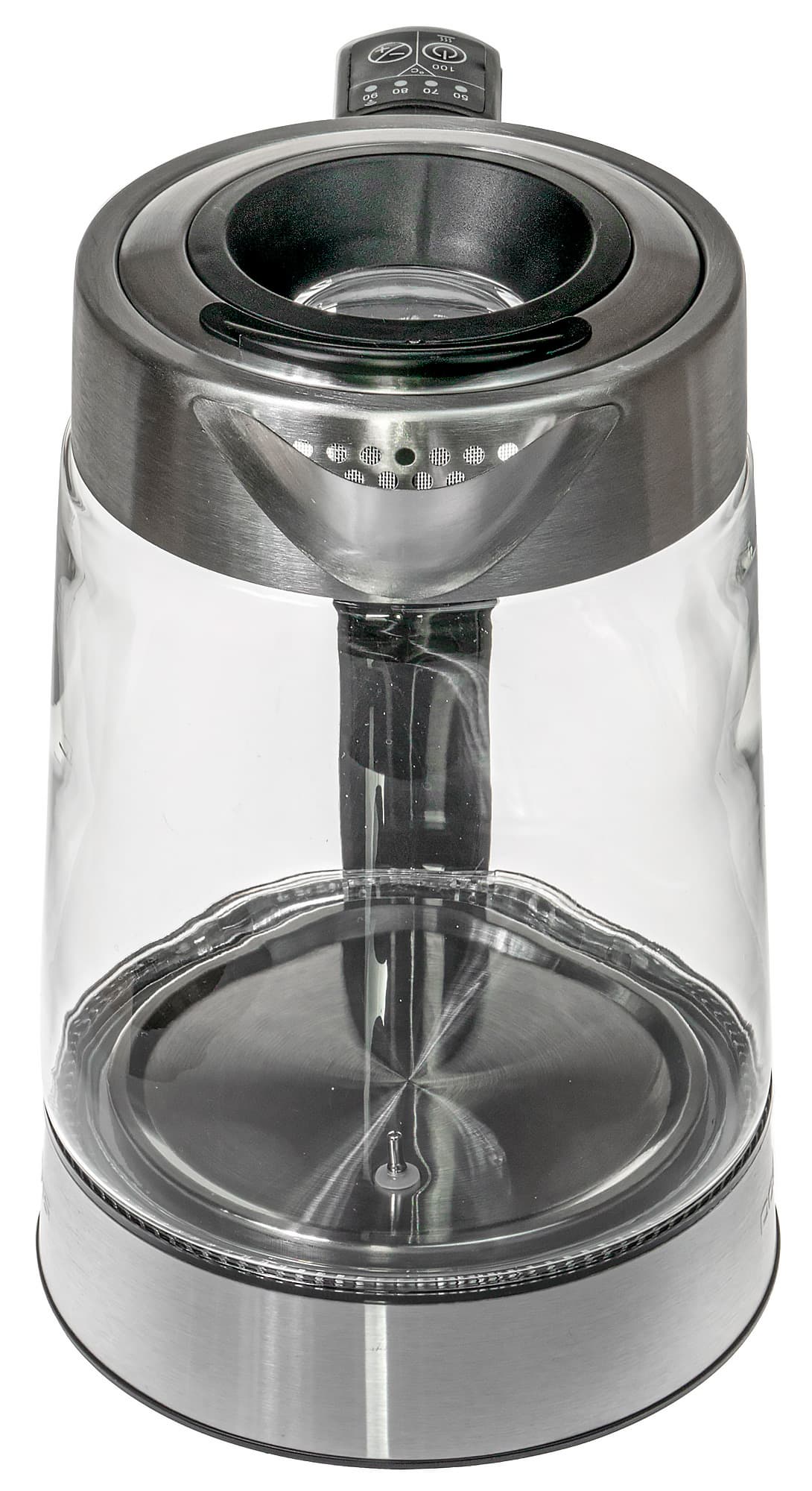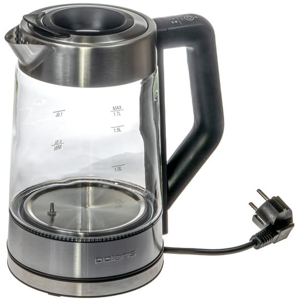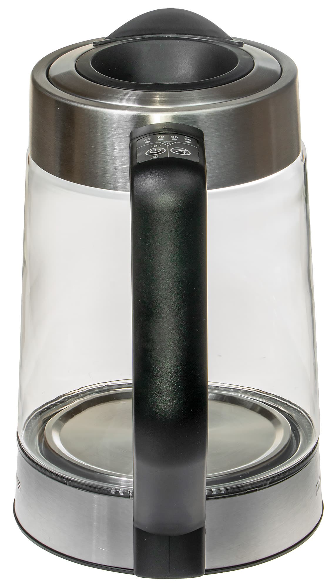 Колба стеклянная. В нижней части колбы находится разноцветная светодиодная подсветка, а на самой колбе с двух сторон нанесена градуировка, с помощью которой можно отмерить 0,5, 1,0, 1,5 и 1,7 литра воды.