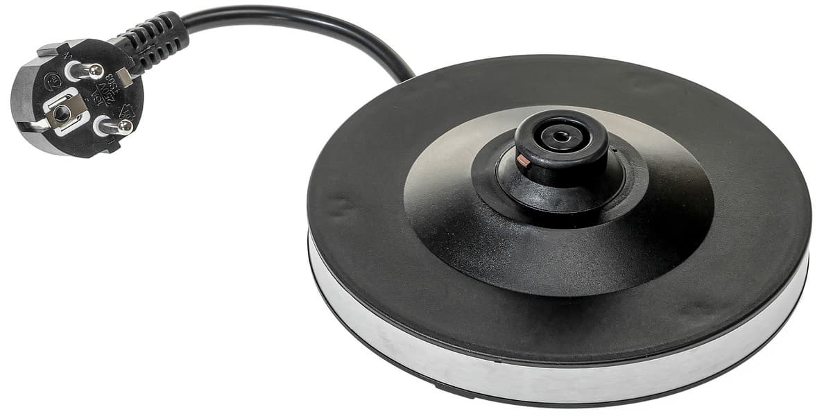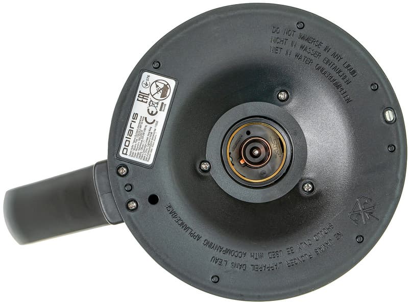 База чайника сделана из черного матового пластика. Окантовка металлическая. На нижней стороне имеется информационная наклейка и отсек для намотки шнура. Сверху — стандартная контактная группа Strix.