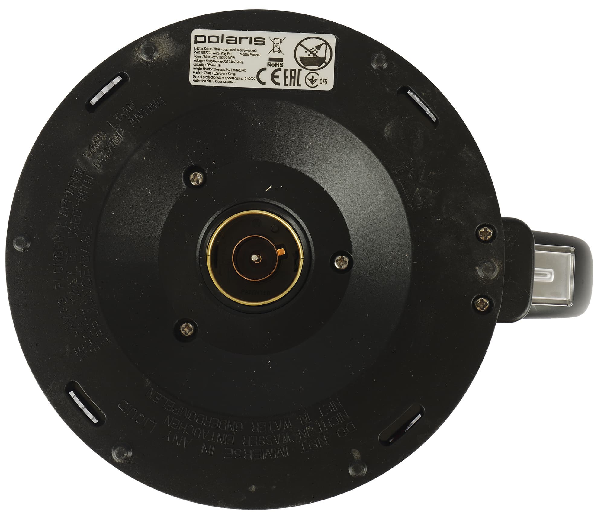 На дне чайника находится шильдик с краткой технической информацией о приборе. Контактная группа Strix состоит из одного кольца и центрального штыря.