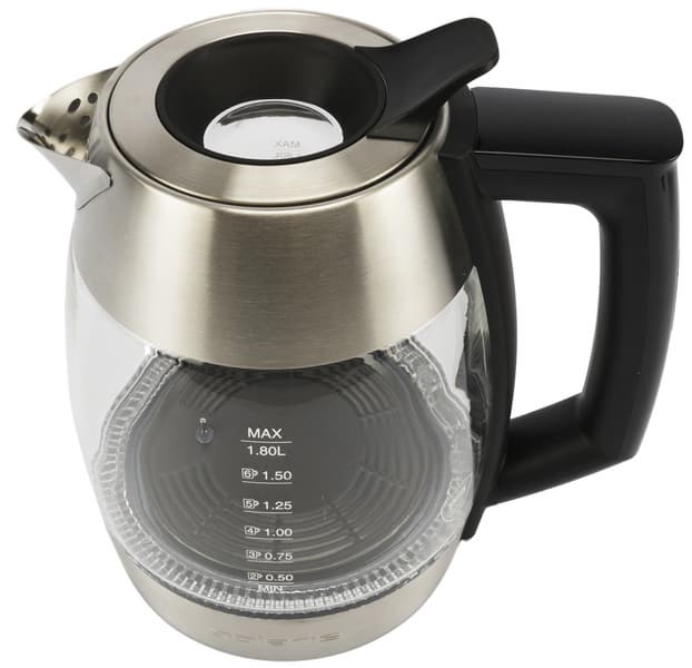 Стеклянная колба дает возможность оценить уровень воды в чайнике, ее легко мыть благодаря съемной крышке. Понятно, что со стеклянным чайником надо быть осторожными — но часто ли вы роняете чайник?