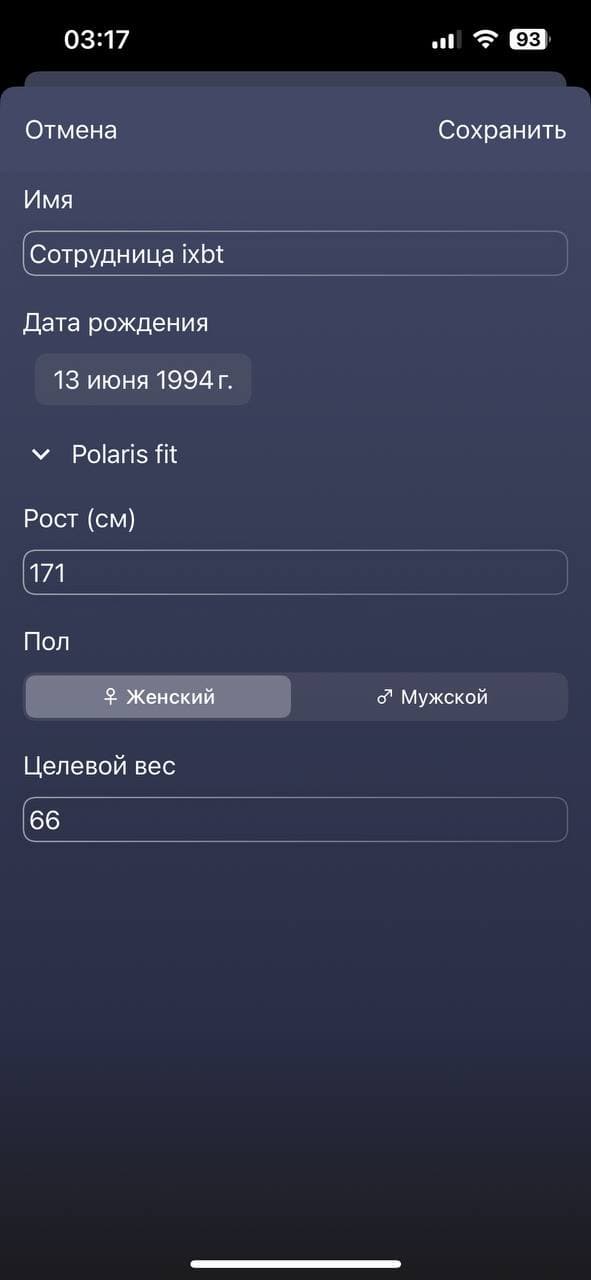 В первых блоках никакой информации не появилось как раз потому, что мы не прошли регистрацию и не ввели свои параметры (рост, возраст, желаемый вес).