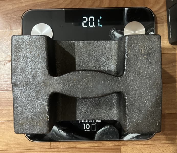 Приступаем к тестированию последней функции и взвешиваем багаж, а точнее ту же гирю весом 20 кг.