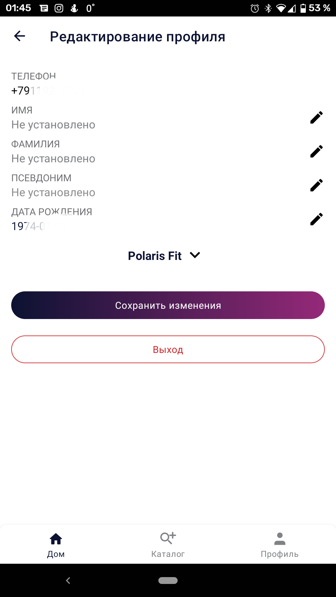 При заполнении профиля мы вводим имя, фамилию, псевдоним и возраст пользователя. Антропометрические же данные доступны после нажатия на ссылку «Polaris Fit»: это, пожалуй, единственный не слишком очевидный момент в использовании приложения.