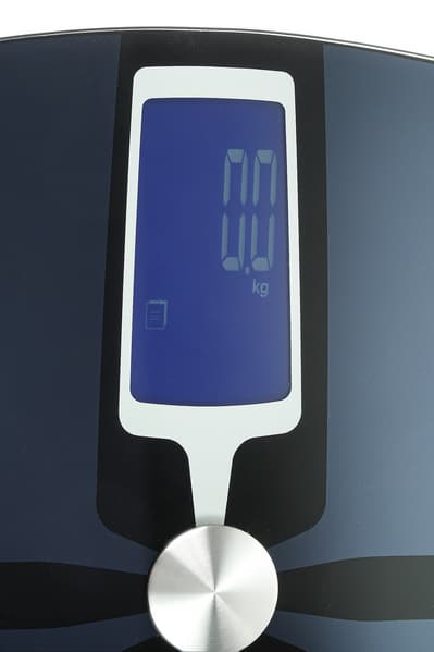 У жидкокристаллического экрана голубая подсветка и хороший угол обзора. В режиме готовности к взвешиванию на нем отображаются крупные белые цифры веса, а также выбранные единицы измерения (можно получить показания в килограммах, фунтах и стоунах). Для переключения единиц измерения требуется короткое нажатие на кнопку настройки, расположенную на нижней панели.
