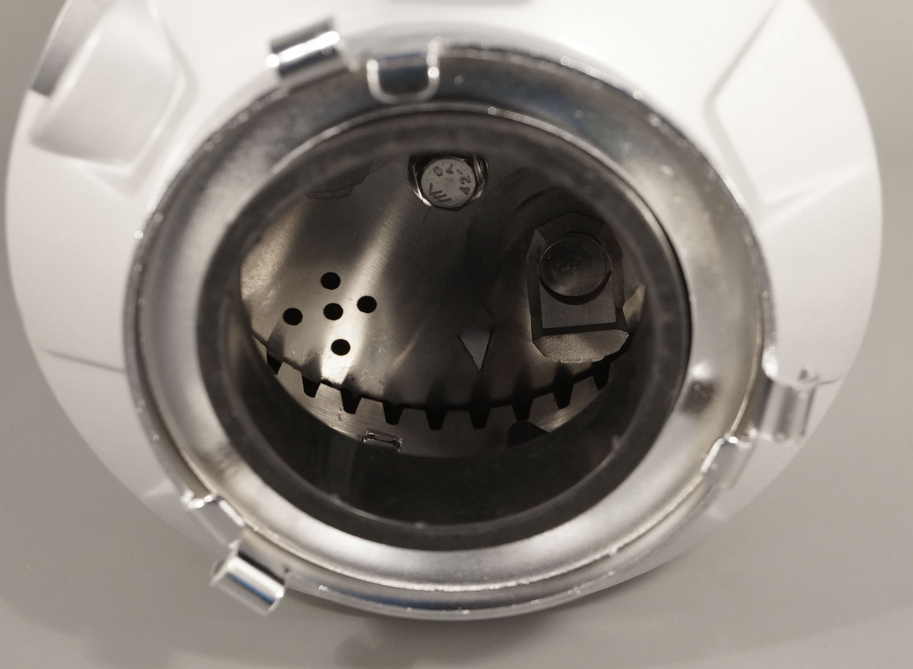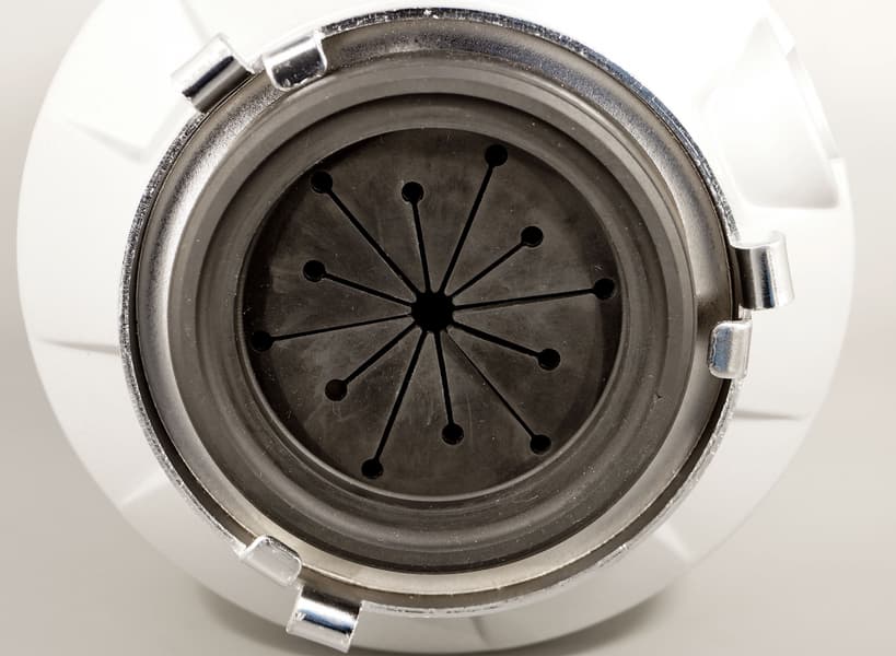 Через отверстие горловины можно рассмотреть внутренности рабочей камеры. На дне емкости есть два подвижных кулачка, они предназначены для распределения крупных отходов ближе к стенкам камеры. Стальное кольцо по периметру снабжено острыми зубцами, размалывающими отходы. Под ними расположены отверстия, через которые образовавшаяся взвесь покидает камеру вместе с водой.