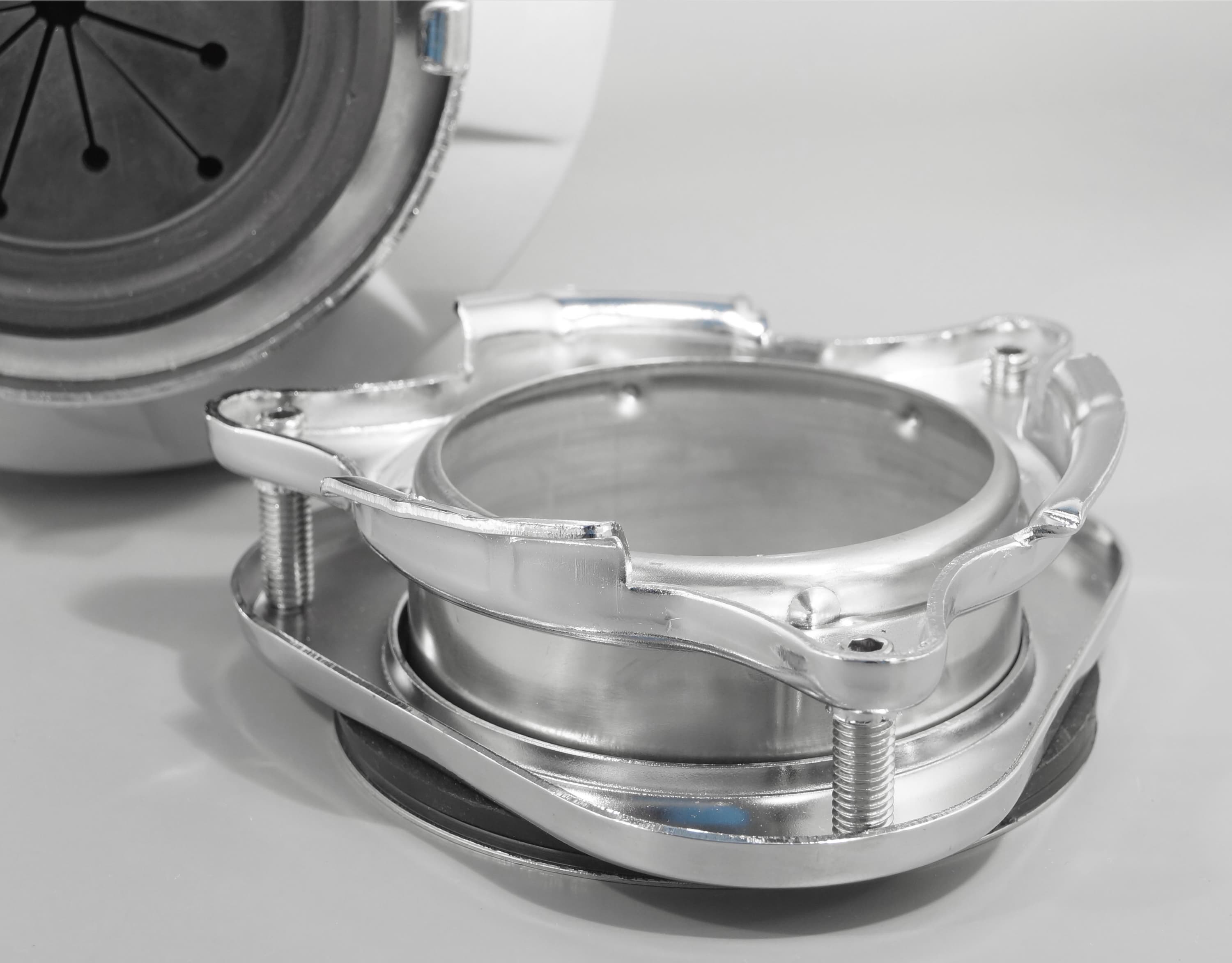 - фланец раковины с крепежным кольцом и кольцевой пружиной, фиксирующей конструкцию, уплотнителем и тремя винтами (система крепления Twist Lock)