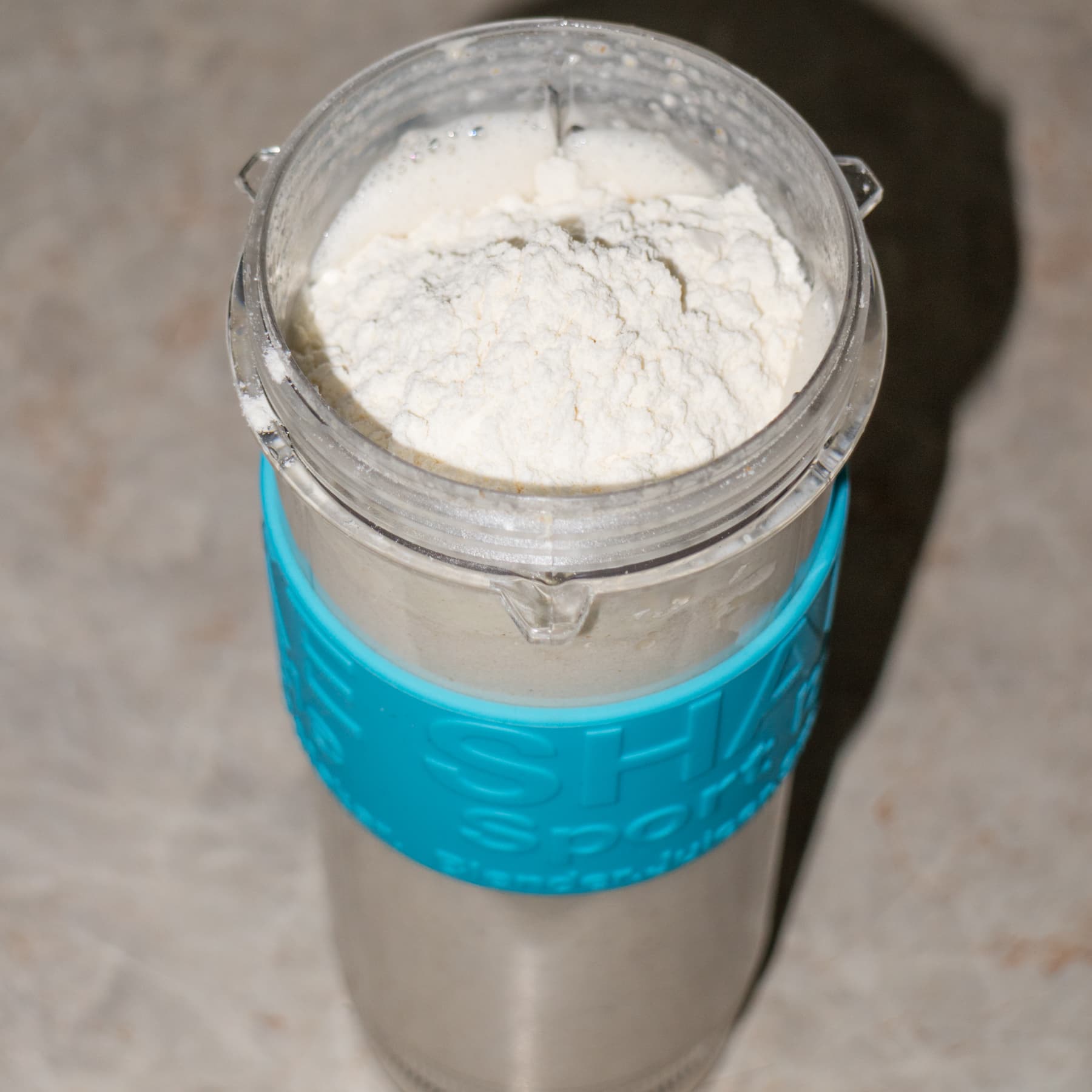 Затем измельчали в среднем спортивном стакане около 30 секунд. В завершение процедили полученный напиток через сито. Отходов было совсем немного. Вкус насыщенный, с ореховым оттенком.