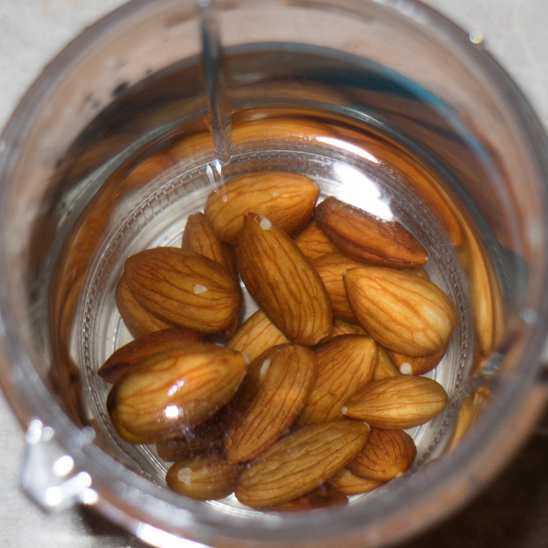 Замочили на 8 часов 40 г миндаля в 200 мл воды.