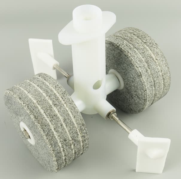 Вставляется насадка в чашу интуитивно понятным образом: когда емкость установлена на моторном блоке, следует насадить держатель жерновов на центральную выступающую часть чаши и совместить со шпинделем. Скребки изготовлены из прочного пластика. Посредством подкручивания гаек могут быть расположены дальше или вплотную к стенкам чаши. Скребки обеспечивает более эффективное и быстрое измельчение, поскольку собирают продукт со стенки и направляют его под жернова.