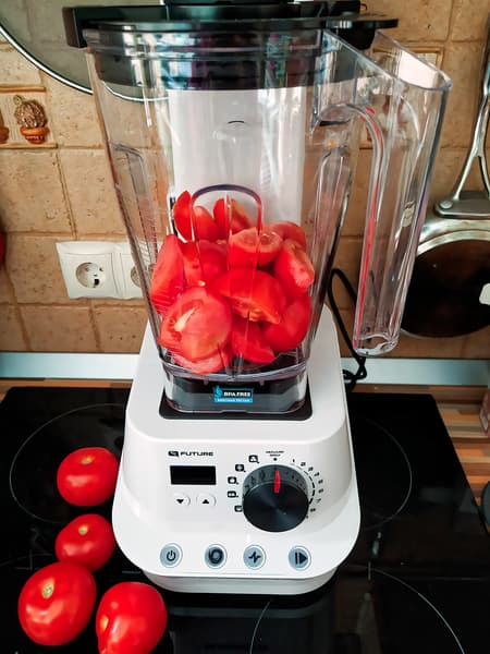 Для проведения нашего традиционного теста мы взяли полкило средних помидоров, обычных зимних, которые можно приобрести в любом магазине. Измельчать решили без вакуумирования. Работали в автоматическом режиме «Измельчение свежих продуктов». Время по умолчанию — 30 секунд.