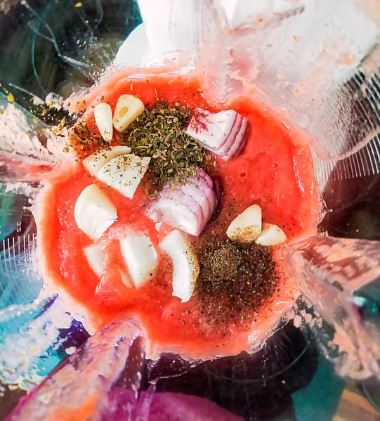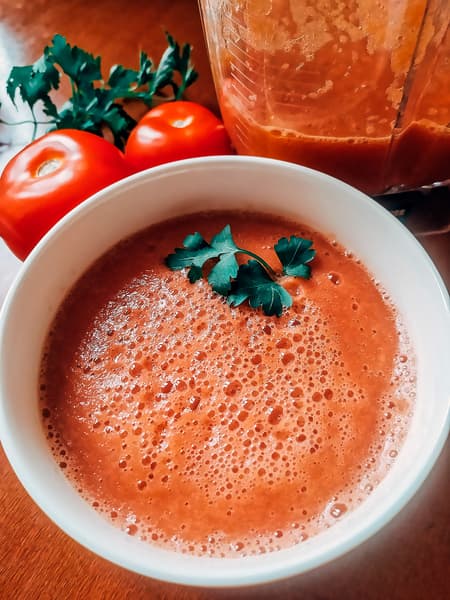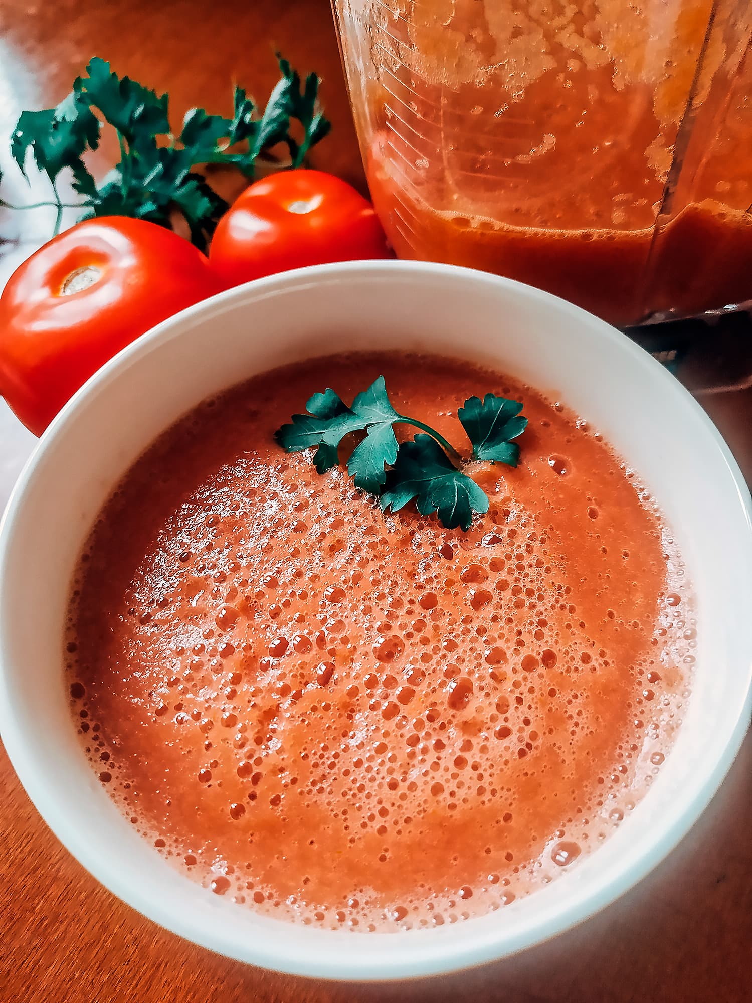Не отходя от кассы, решили проверить функцию «Суп». В томатное пюре забросили немного лука и чеснока, добавили трав и черного перца, включили блендер и оставили его в покое на 3 заданные прибором минуты.