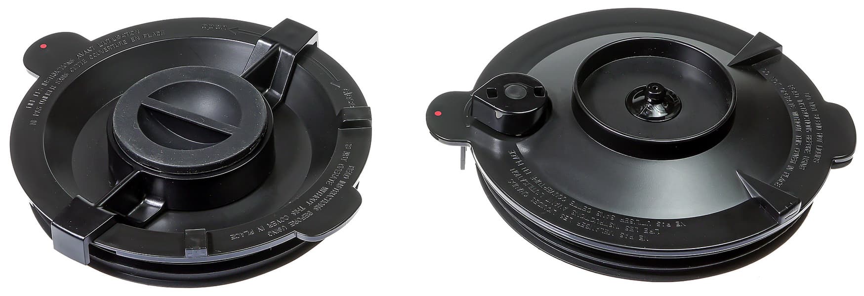 Конструкция второй крышки, для измельчения в вакууме, несколько сложнее. У нее в центре тоже заглушка, откручивающаяся, но под ней никаких отверстий нет — там прячется вакуумный штекер. В заглушке — маленькая дырочка, через которую и откачивается воздух.